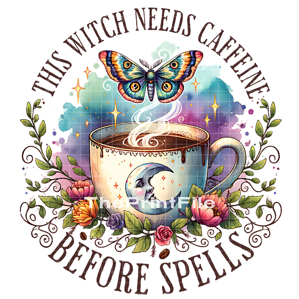 This Witch Needs Caffeine Before Spells Moon Mug Png